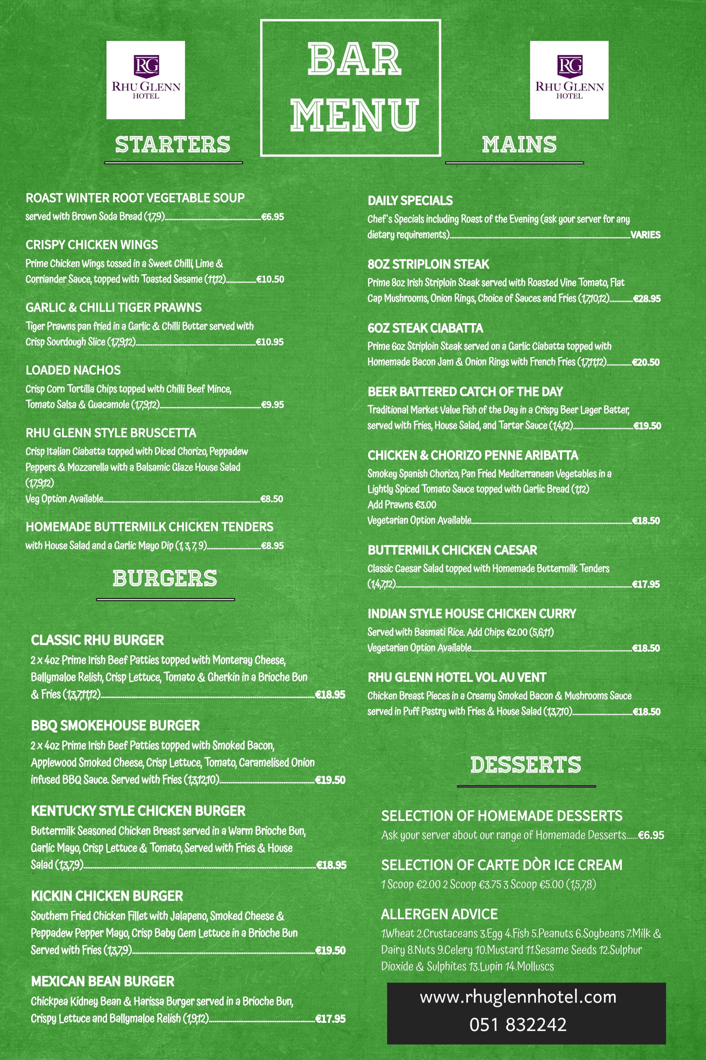 As the sun sets, our Bar Food Menu takes centre stage—offering everything from traditional Irish meals to internationally inspired favourites. Served daily from 3:00pm to 8:45pm, our evening dishes are warm, generous, and full of character—perfect for unwinding after a day of exploring, celebrating with friends, or simply treating yourself. All served in the warm, welcoming surroundings of our beautifully designed Luffany Restaurant.