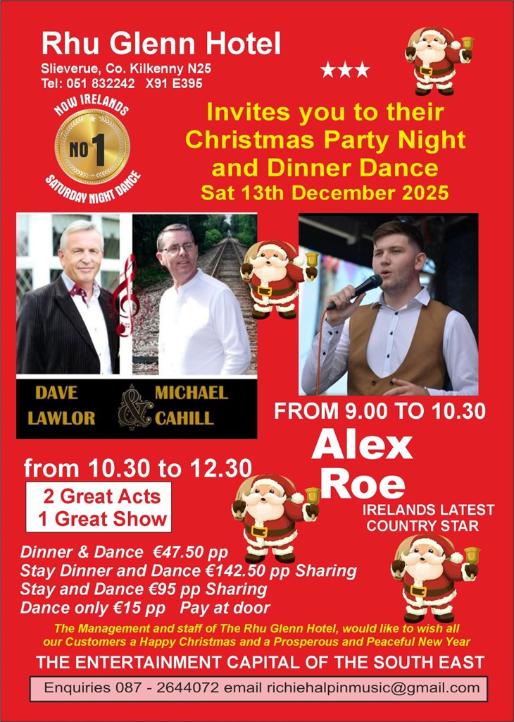 Dinner Dance €47.50 per person 4 x Course Dinner at 7pm arrive for 6:30pm